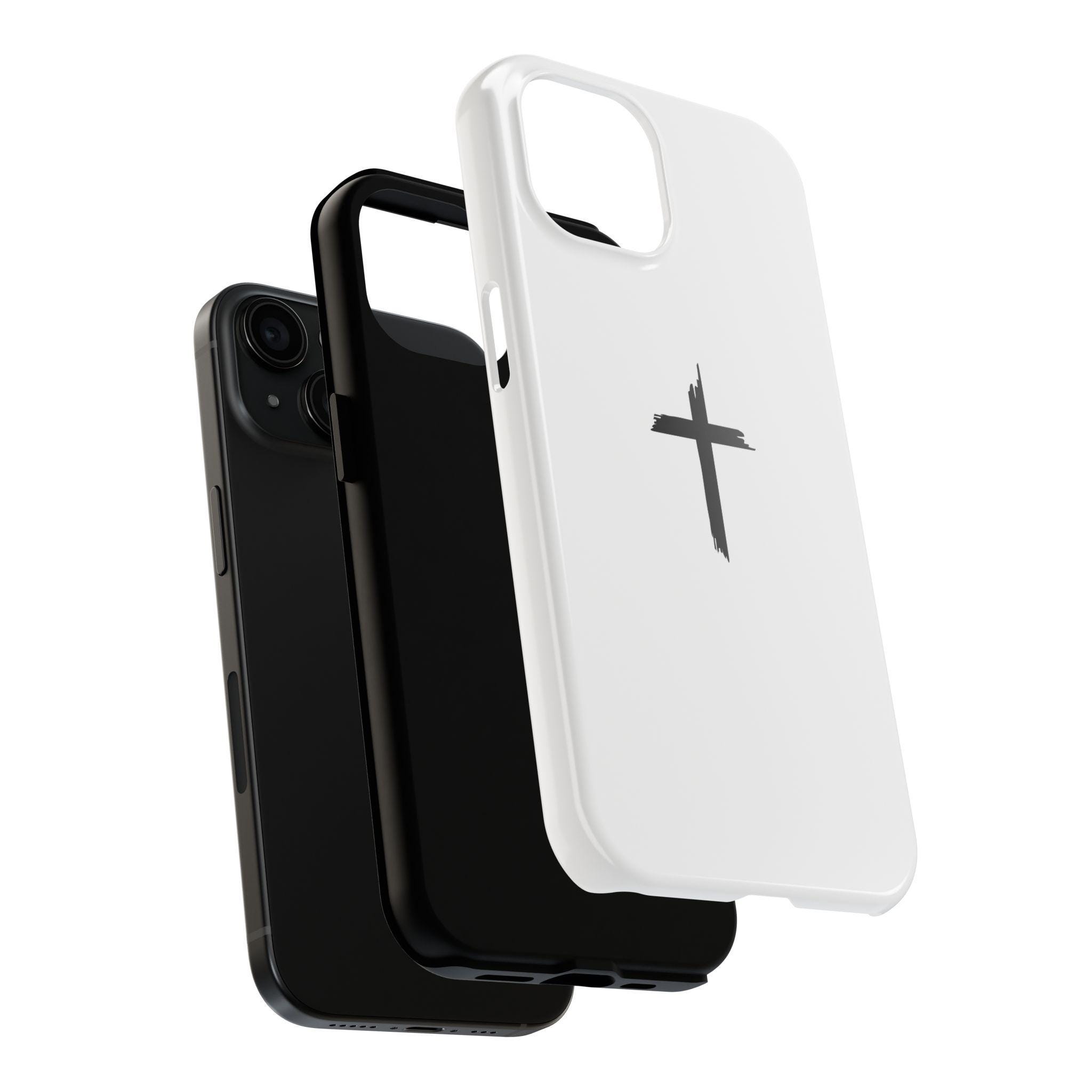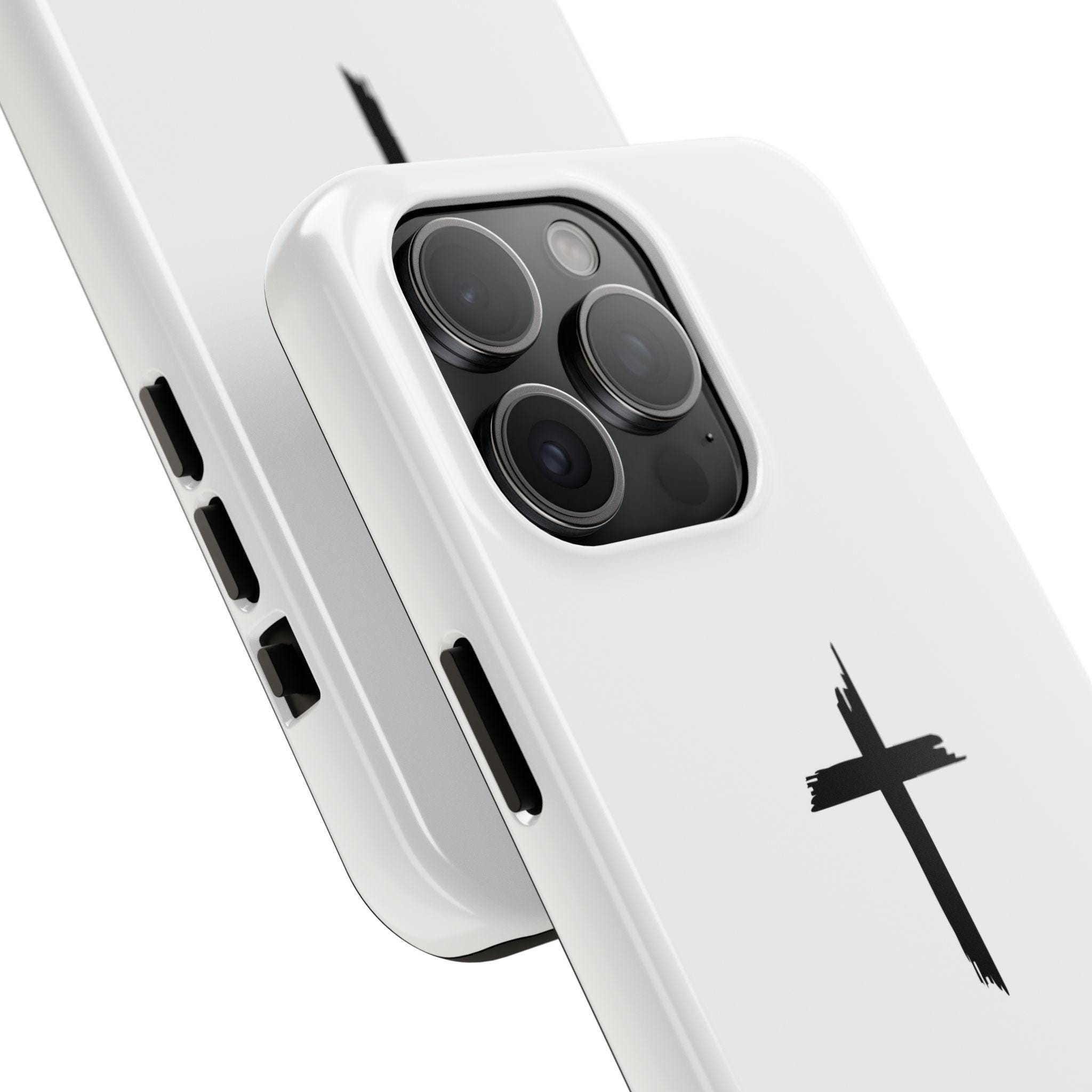 A slim, resilient phone case that carries a quiet, confident symbol. The white glossy shell paired with a soft black rubber liner keeps your phone safe without adding bulk. The hand-brushed cross at the center reads simple and intentional — a subtle statement for someone who values calm clarity and steady faith in daily life. It slips easily into a pocket or bag, settles on your desk, and withstands the small knocks and drops of commuting, coffee runs, and weekend errands. The gloss finish keeps colors bright while UV protection helps the design stay true over time. Designed for grown-up users who prefer minimal, meaningful accessories, this case balances protection and pared-back style.